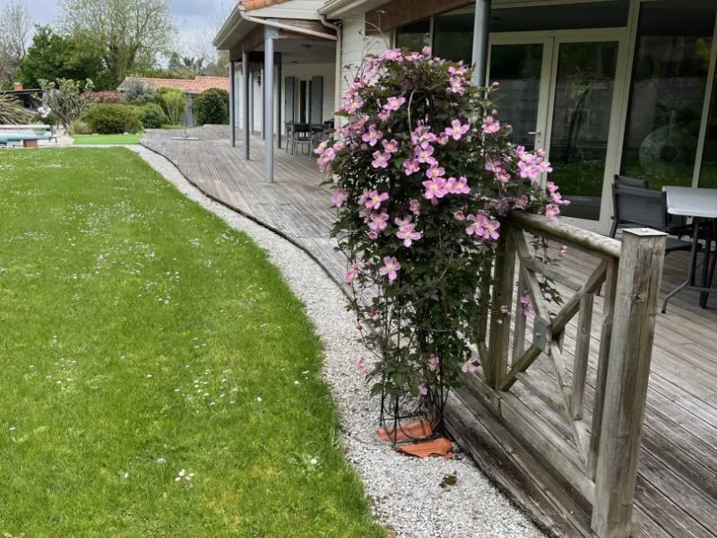 La maison est entourée de parcs et jardins, sans vis à vis, en retrait de la route. Elle possède un magnifique parc clos et arboré de 2500 m2 avec des arbres centenaires. 600 m2, d'aire de jeux sont mis à votre disposition pour différentes activités. Par ailleurs, elle est à deux pas des commerces mais dans un cadre de tranquillité.