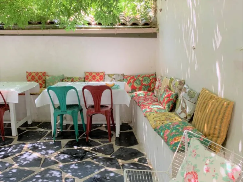 Le petit déjeuner compris est servi dans la salle de l’ancien café ou sur la terrasse dès que le temps le permet. Il est fait avec des productions locales et bio et d'excellentes confitures faites maison.!