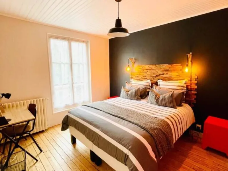 Un esprit atelier, où la fonctionnalité est mise à l'honneur. Cet espace de vie aux allures de loft industriel, combine à merveille les couleurs vives aux matériaux bruts. Il est situé au premier étage, accès par escaliers et accueille jusqu'à 4 hôtes.La Marquise Barbot