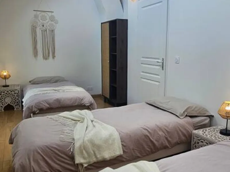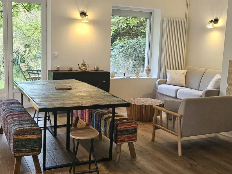 L'Autre Paradis possède un gîte de 80 m2 avec 3 chambres, 1 séjour-cuisine, 2 salles de bains, 1 buanderie, 2 terrasses et 1 verger qui donne sur le jardin de ressourcement avec ses piscines naturelles, ses plages et son sauna immersif . Le séjour comporte un canapé lit pour un appoint supplémentaire (soit 7 personnes+2). La maison est au vert et au calme, lumineuse et cosy. Profitez durant votre séjour de toutes les activités bien-être proposées au jardin. De très nombreuses activités sportives, ludiques et culturelles à proximité.Localisation