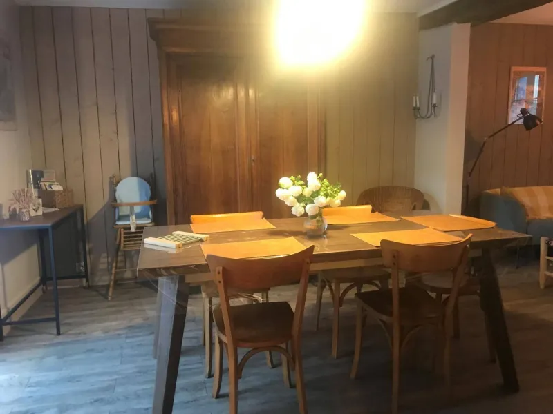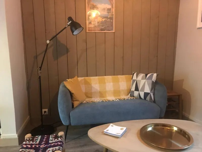 PAS DE SOCIETE ni de DEPLACEMENT PROFESSIONNEL Le gîte "La Maison d'à côté" est une charmante maison du centre ville, rénovée avec goût. Commerces et forêt à proximité.Petite cour avec mobilier de jardin et barbecue. Stationnement gratuit dans les rues autour du gite. Au rez-de-chaussée : entrée sur cuisine entièrement aménagée, séjour salon avec TV. 1 salle d'eau/WC.