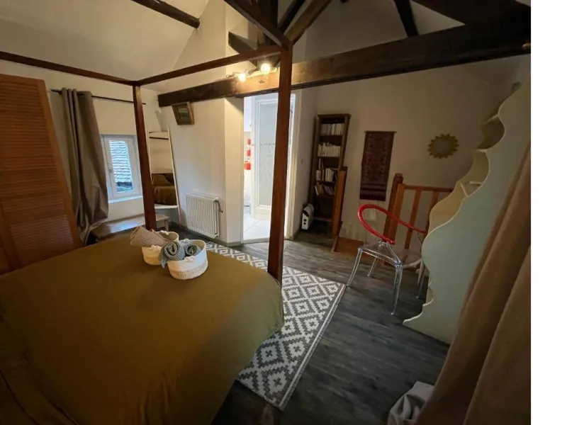Le logement est composé d'un salon/cuisine de 21m2 et à l'étage d'une chambre de 18m2 avec un lit double de 160cm et sa salle de douche /WC .La chambre a une très jolie vue sur la Seine . Le salon est équipé d'un canapé lit et d'une kitchenette. Très lumineux avec une double vue sur la Seine et la petite cour. (attribué au logement) Environnement calme et apaisant.