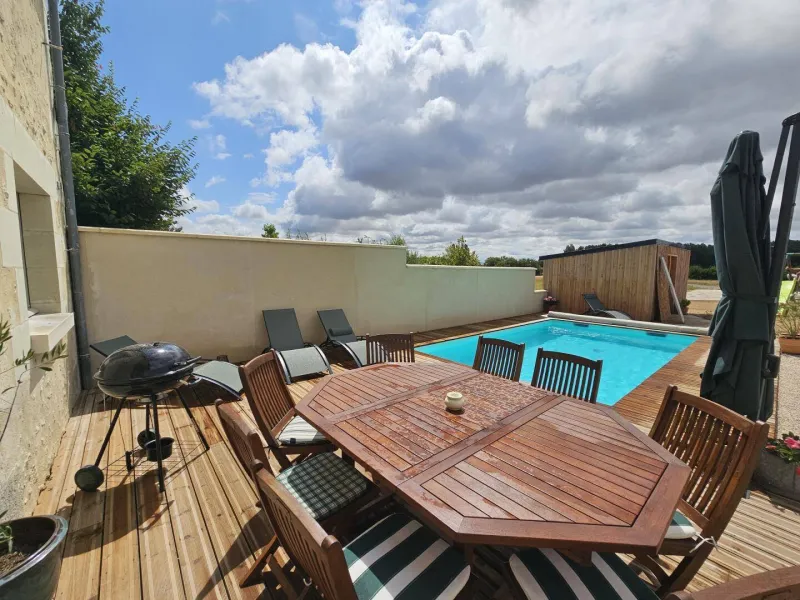 Entre les châteaux de la Loire et les vignobles du sud Touraine, ce gîte pour 6 personnes vous accueille dans un écrin de verdure, au calme, à Avon-les-Roches. Spacieux, lumineux et parfaitement équipé, il est idéal pour un séjour en famille ou entre amis. La piscine extérieure privative, bordée de champs, invite à la détente dès les beaux jours. Profitez de la terrasse, du barbecue et d’un intérieur chaleureux pour savourer chaque moment, en toute simplicité. À proximité, découvrez les perles de la région : Azay-le-Rideau, Chinon, Richelieu, les caves viticoles, les villages de caractère ou encore les balades le long de la Vienne. Randonnées, marchés gourmands, visites culturelles ou siestes au bord de l’eau… Ici, on ralentit, on respire, et on profite du meilleur de la Touraine, entre nature et patrimoine.