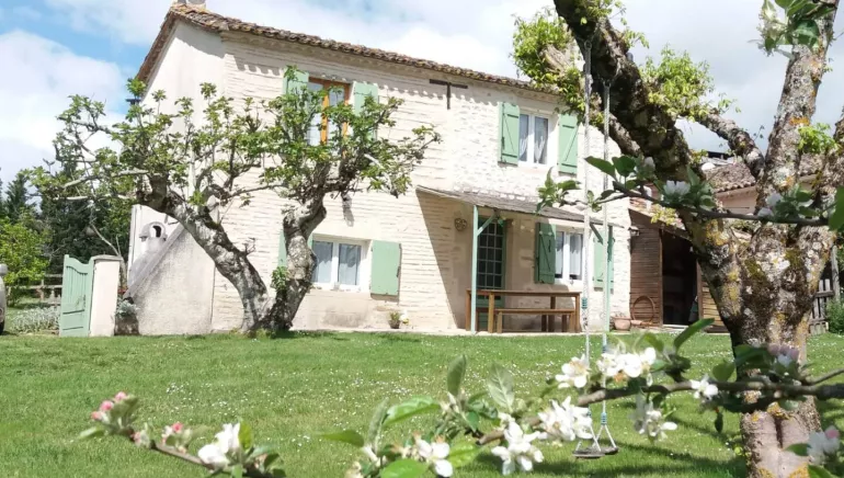 Gîte de charme en pierre pouvant accueillir 4 personnes, avec jardin privé, barbecue et vue sur la forêt. Profitez du cadre extérieur sous le figuier centenaire ou sur la terrasse avec auvent. La maison sur deux étages propose deux chambres doubles, la "chambre aux fleurs" avec un lit double en 160 cm et la "chambre aux oiseaux" avec un lit double en 140 cm. Les lits sont préparés à votre arrivée.