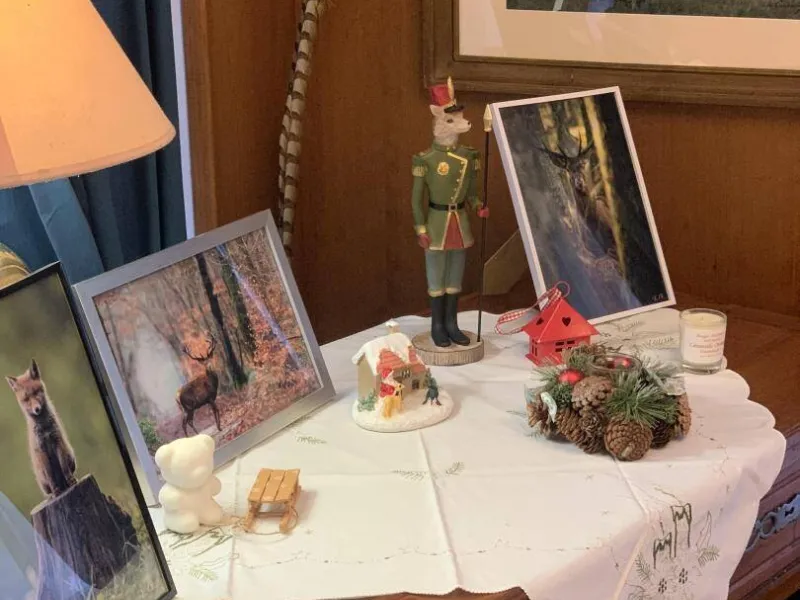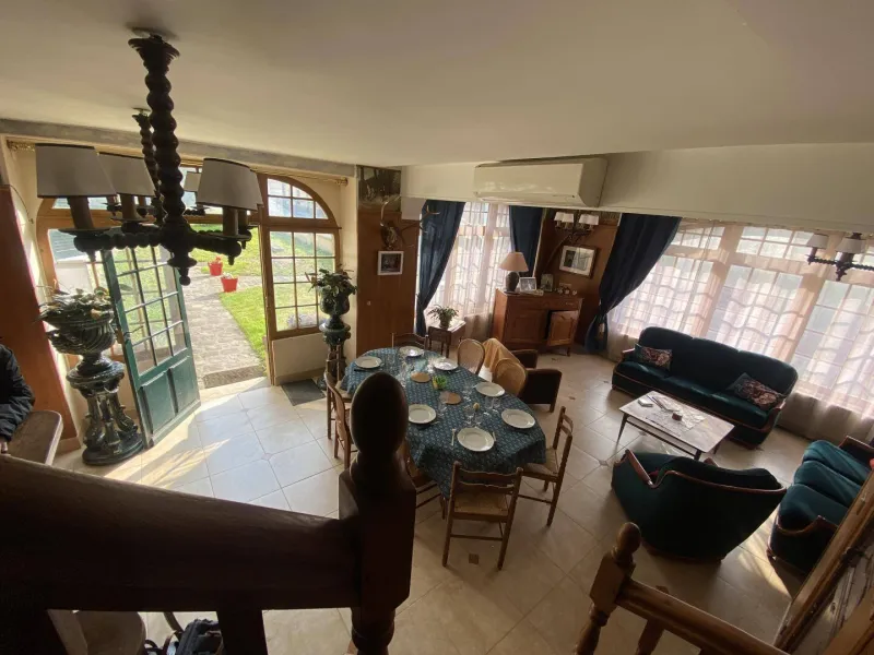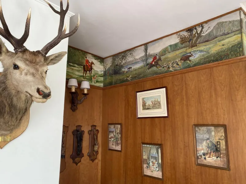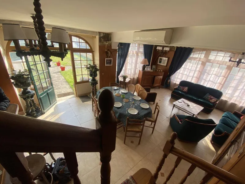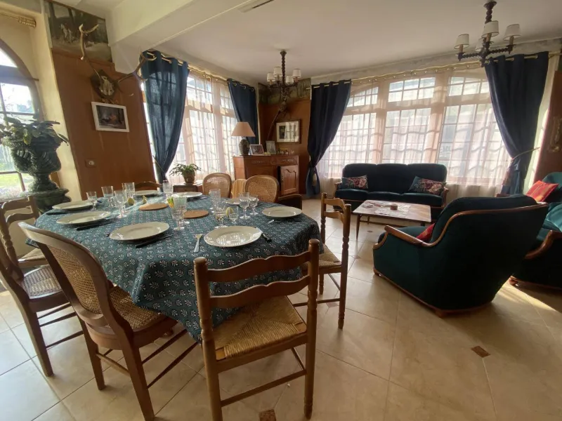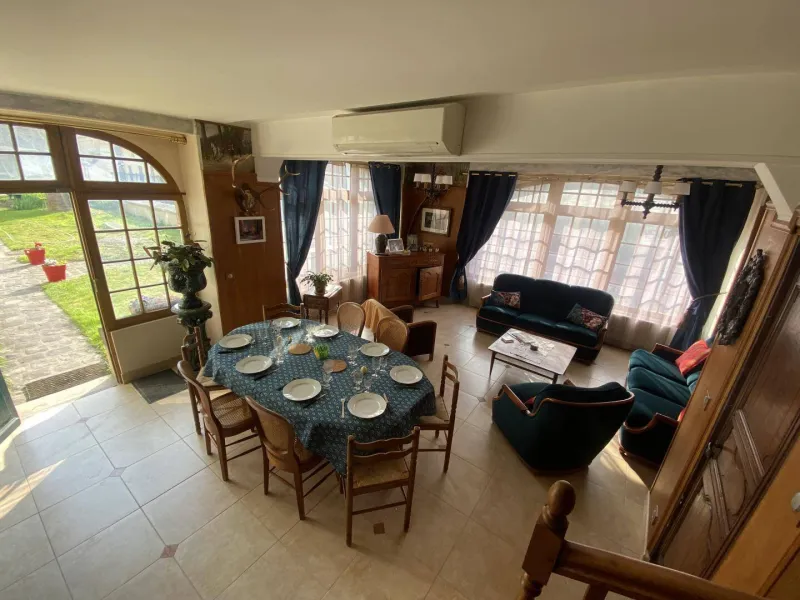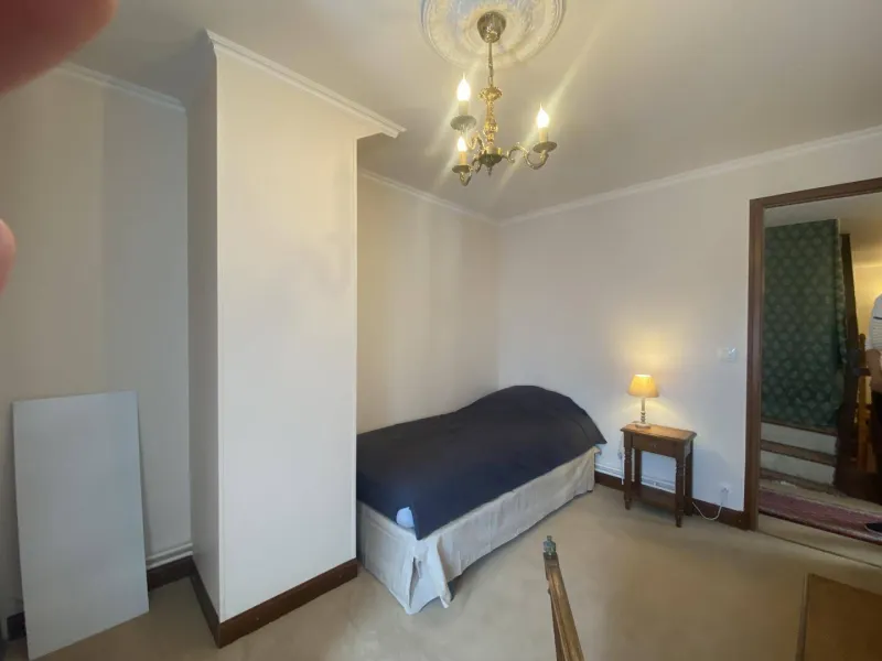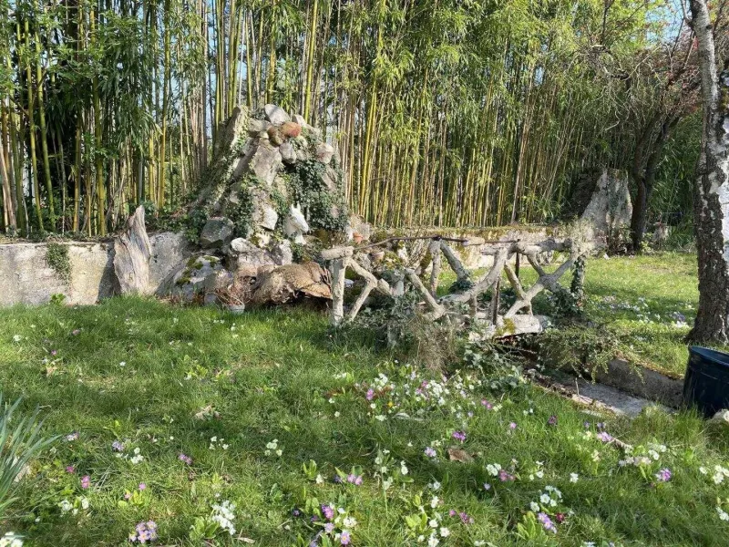 Magnifique parc dans lequel il est possible de se promener. A disposition un petit espace privatif à l'extérieur avec mobilier de jardin. Le gîte "Les Chasses" est composé : Au rez-de-chaussée d'une grande salle de vie avec imposant bar en bois d'époque et cheminée décorative (ne pas utiliser). Les fresques peintes qui courent tout autour de la pièce, vous donnent dès votre arrivée dans les lieux l'esprit de la demeure et vous emportent au début du siècle dernier. Grande cuisine d'époque avec puits de lumière dans laquelle il sera très agréable de préparer les repas. Un WC indépendant au rez-de-chaussée. A l'étage 3 chambres :- 1 chambre avec 1 lit double (140 x 190) et sa salle de bains privative avec WC.
