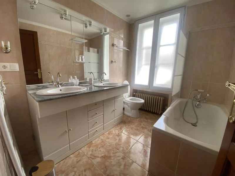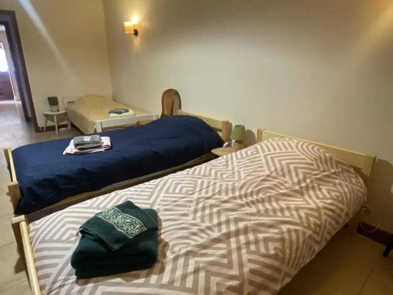 Une salle de bain avec WC. - Inclus dans le prix : WIFI. Draps. Serviettes de toilette, Chauffage gaz. Lit bébé et chaise haute. - En supplément : forfait ménage (100 €). Taxe de séjour Caution : 700 € Label Vélo depuis le 20/03/2024. ATTENTION : pas d'accueil le dimanche - Le mardi accueil avant 17h ou après 19h. A l'attention des sociétés et déplacements professionnels : forfait ménage obligatoire (100 €)