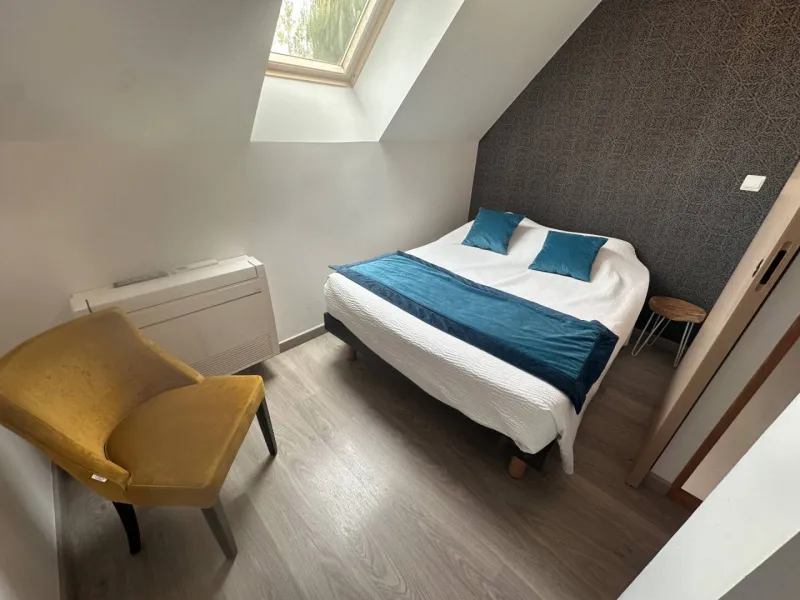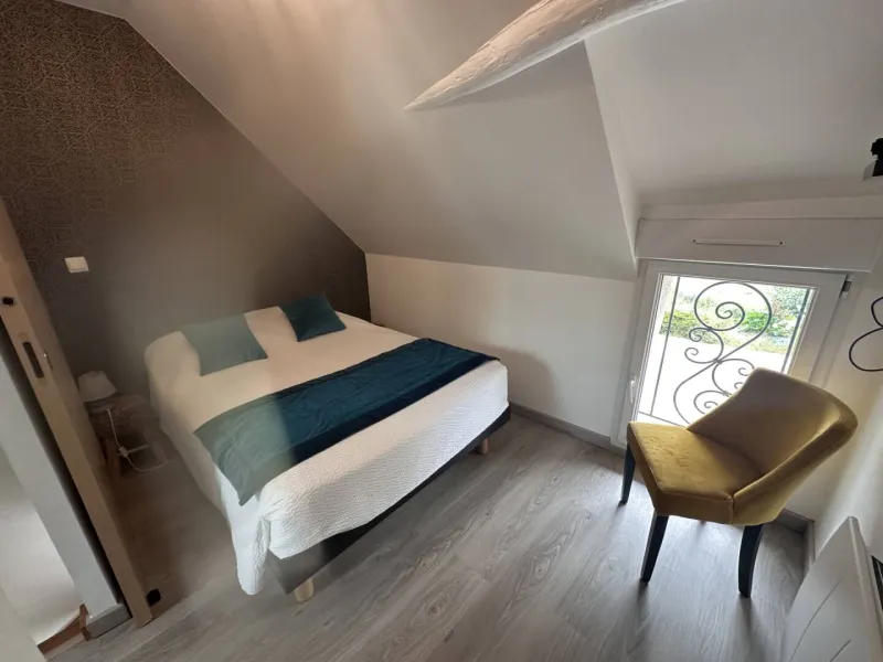 Avec ses deux chambres élégamment décorées, ce gîte offre tout le confort nécessaire pour un séjour agréable. Sa décoration douce aux tons jaunes apporte une touche de chaleur et de bien-être, idéale pour se détendre après une journée de visites.Un confort optimal toute l’année