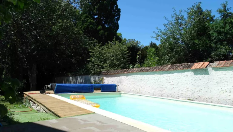 Studio meublé avec accès à la terrasse exposée sud-ouest, piscine dans le jardin dans propriété centre ville de Mer.