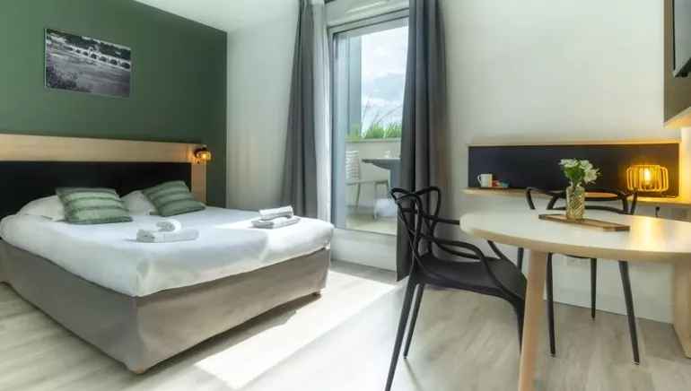 En plein centre de Tours, l’appart hôtel City Résidence Tours vous accueille dans ses appartements pouvant héberger jusqu’à 4 personnes. Pour profiter confortablement de votre séjour, les apparts hôtel sont entièrement équipés et meublés. Bénéficiez de services hôteliers à la carte (petit-déjeuner, parking privé, laverie…) pour enrichir davantage votre séjour.